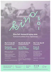 Kino Soi! -konsertteja järjestetään Kinolla useita kertoja vuodessa. Konserttisarja on vuodesta 2017 lähtien tuonut huipputason kamarimusiikkikonsertteja tunnelmaltaan ainutlaatuiseen Kino Tapiolan funkkisleffateatteriin Espoossa, rikastuttaen Tapiolan ja koko pääkaupunkiseudun kulttuuritarjontaa. Kino Soi! tarjoaa lähikamarimusiikkia kaikille leffalipun hinnalla. HUOM! Konserttiliput vain järjestäjän omilta verkkosivuilta TAI teatterilta konsertti-iltana!