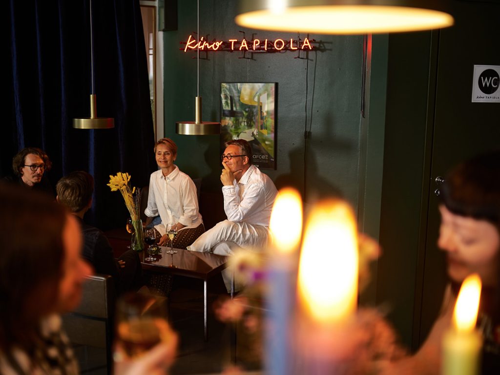 Juhlatilana Kino Tapiolasta tekee erityisen sen upea museosuojeltu arkkitehtuuri, kaunis aulakahvilatila ja tekniset valmiudet. Elokuvasalin lavalla voi vetää vaikka stand up -komiikkaa tai keikan, ja aulaan luodaan tunnelmaa musiikilla ja kynttilöillä.